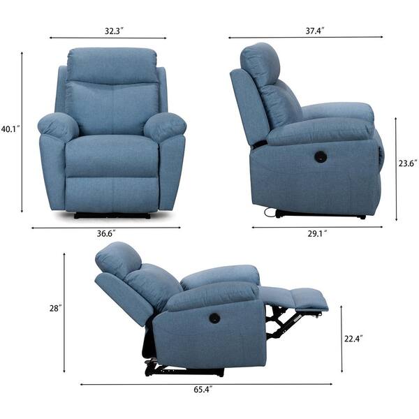 Fc Design Modern Light Blue Electric Linen Power Recliner Chair With Usb Charging Port And Pillow Top Arms 996062 Lblu